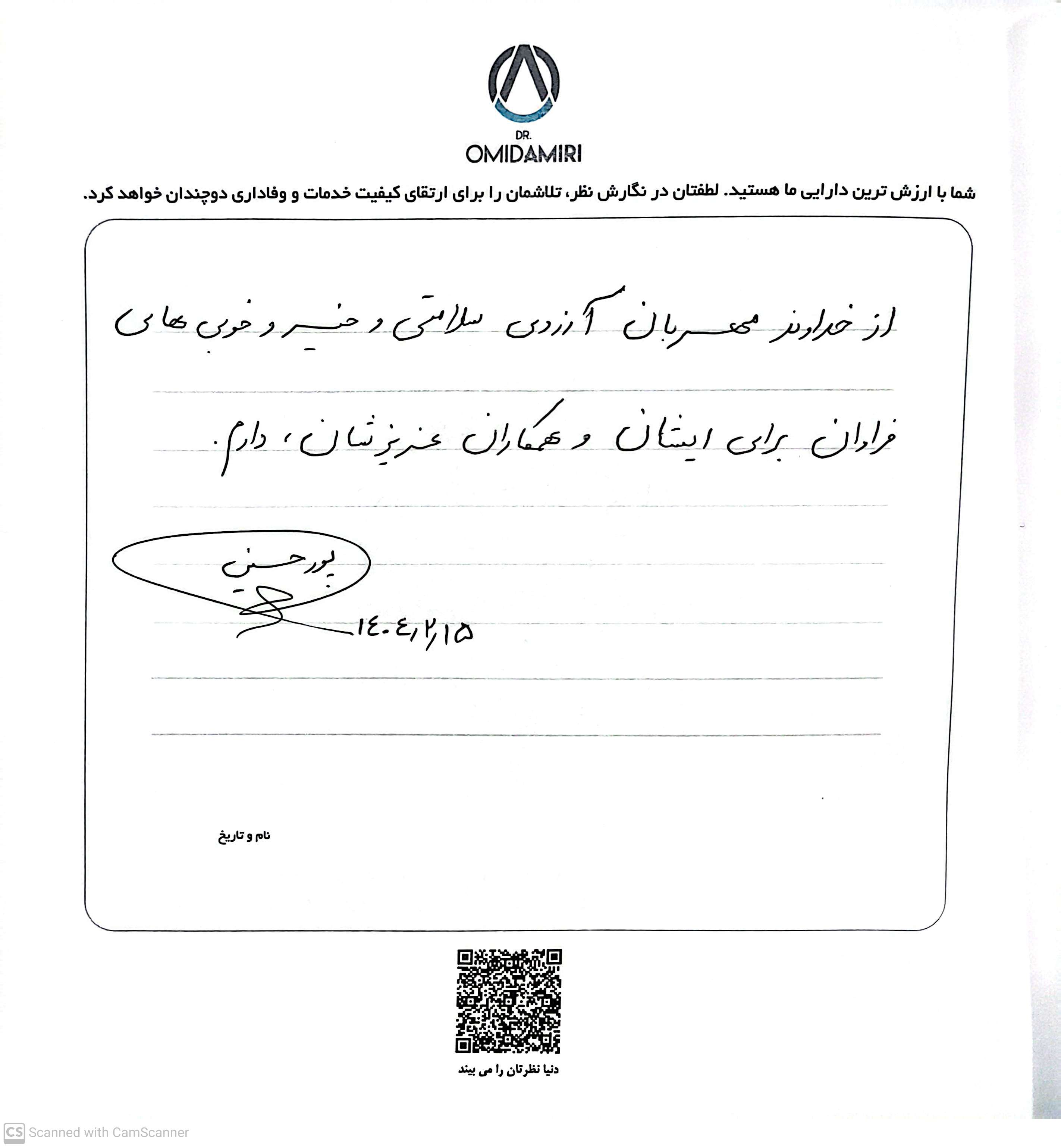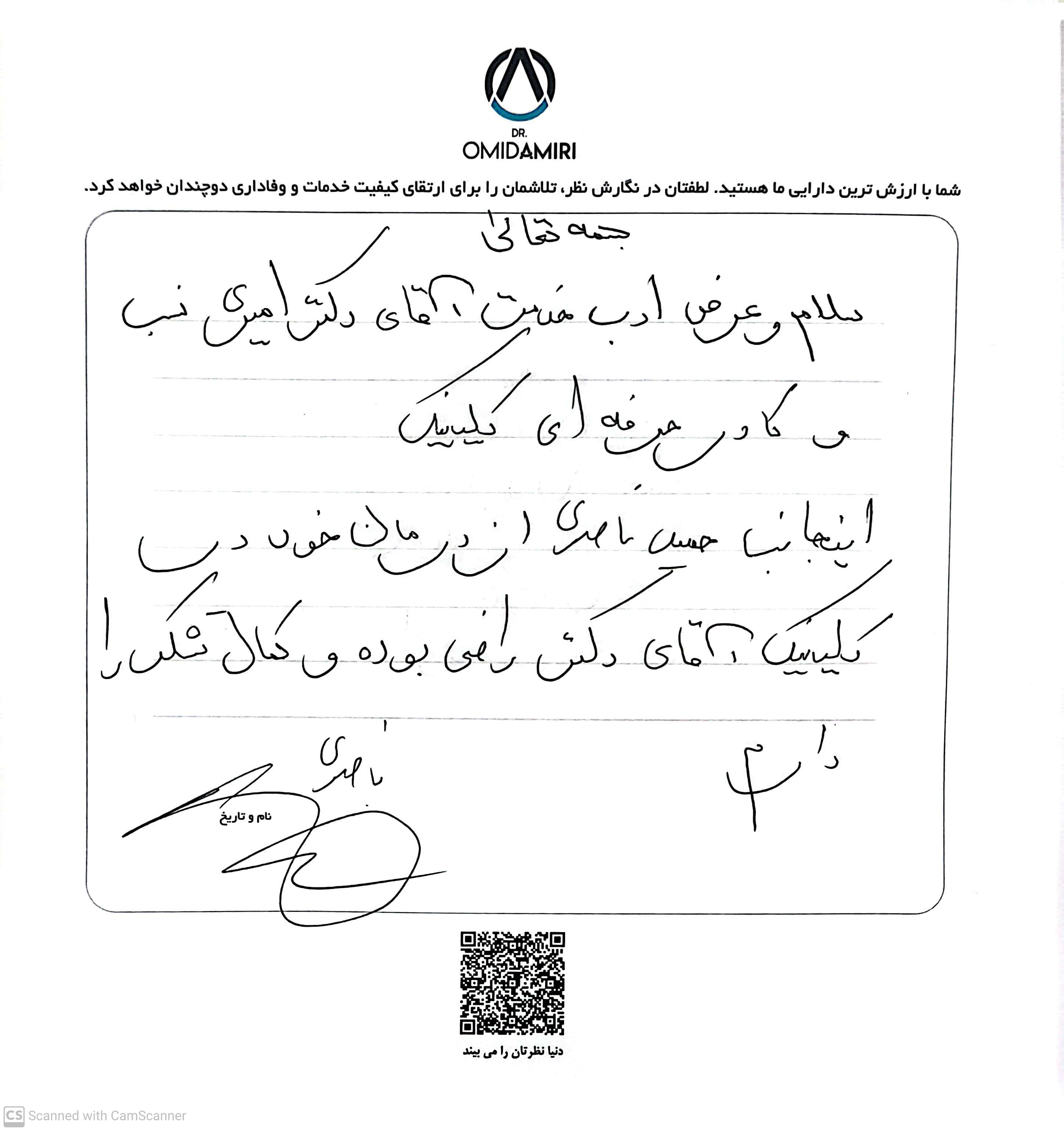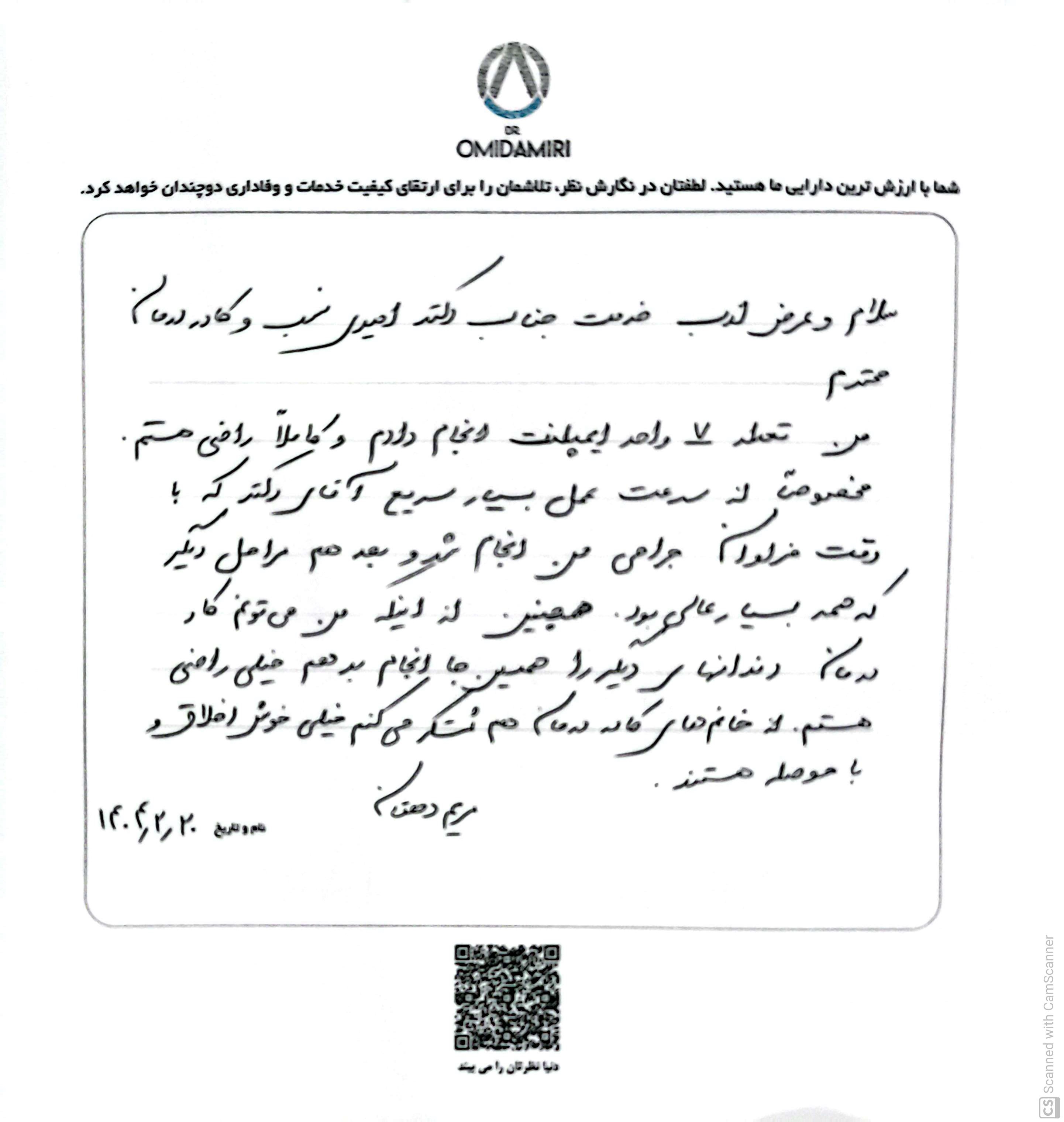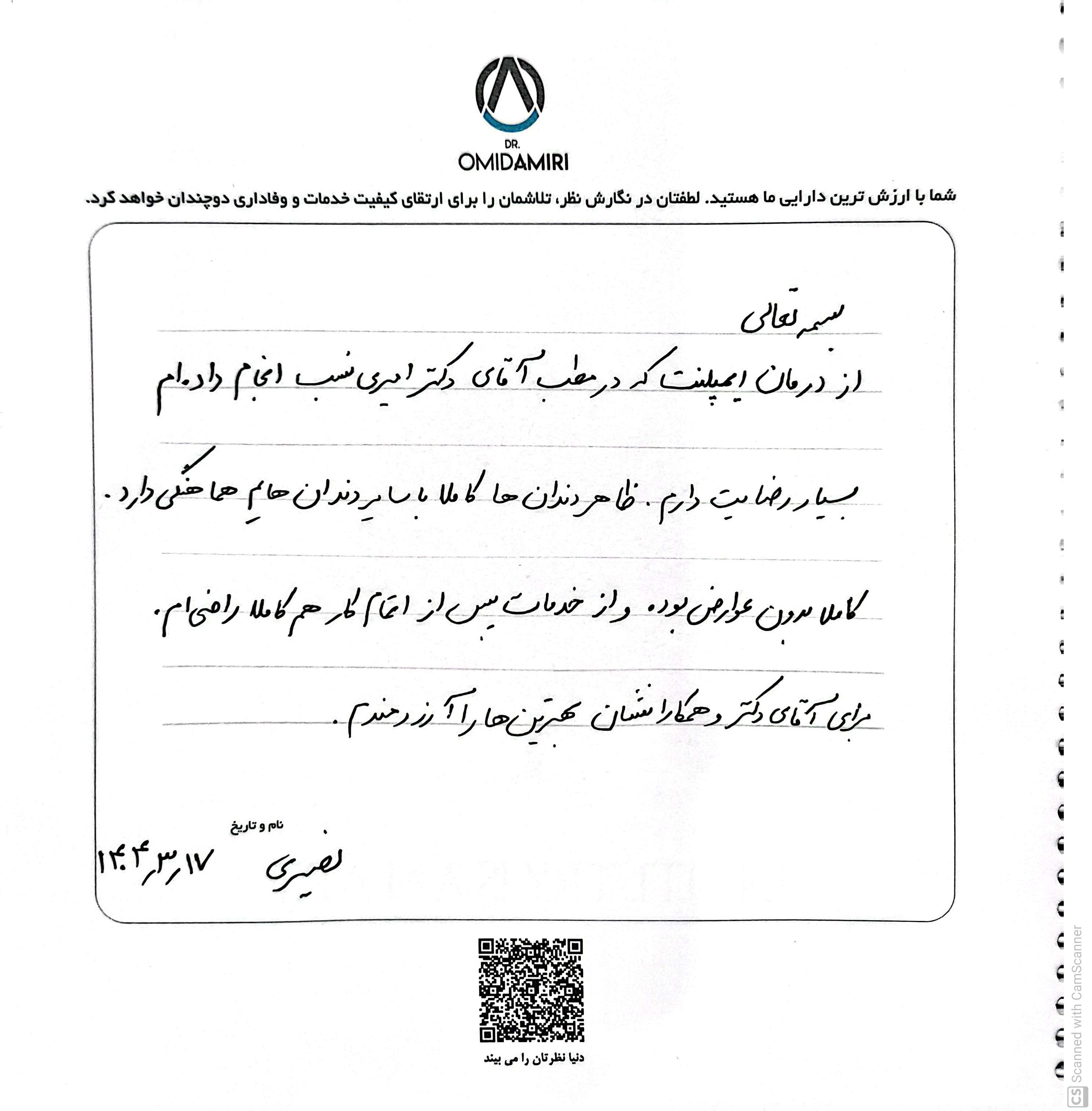 نظرات بیماران درباره دکتر امید امیری نسب بهترین دندانپزشک قم